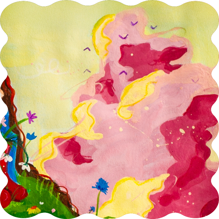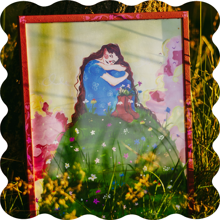 Gdy ciągle pada i pada… ale na moment wychodzi słońce. Czasem wystarczy odrobina światła, by coś zakwitło. Zamknęłam oczy i powstało to – wzgórze pełne kwiatów i spokoju po burzy.